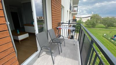 Idealnie położone przestronne mieszkanie 48 m2 z dużym, ustawnym salonem i oddzielną kuchnią oraz dużym, zadaszonym ...